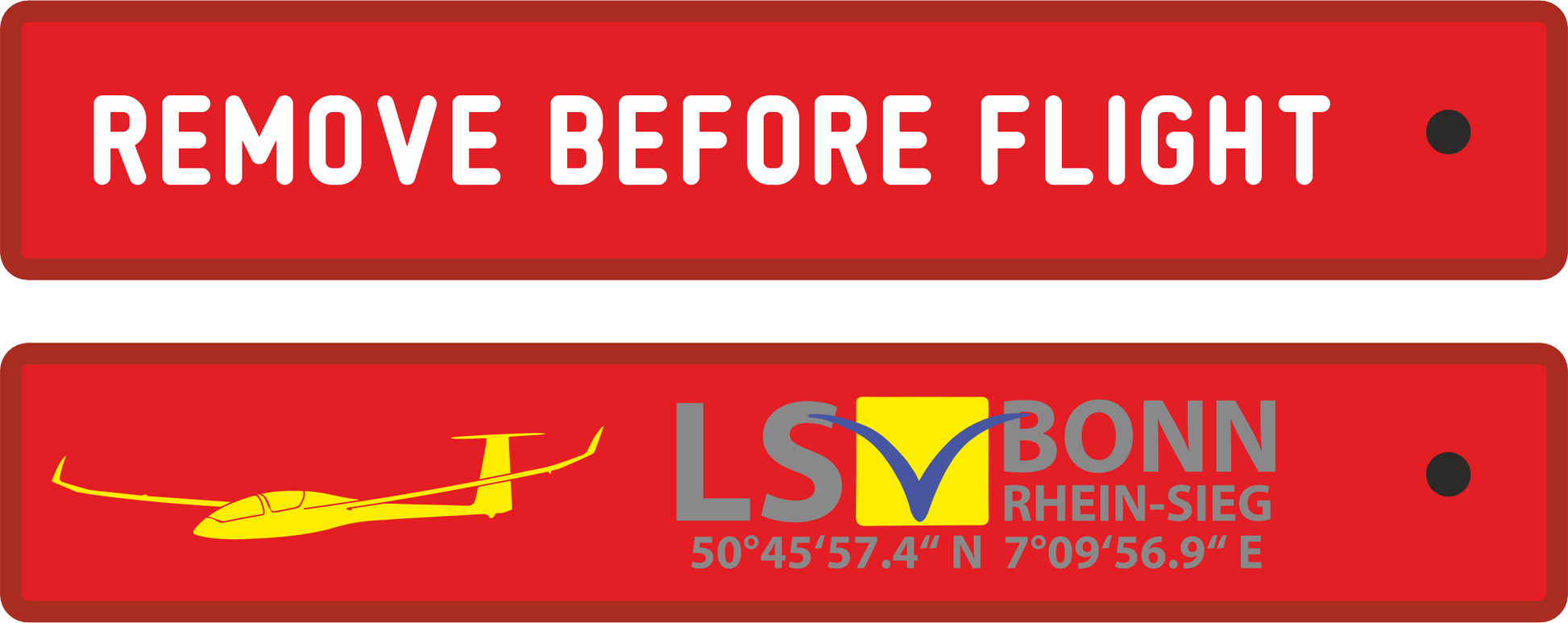 - einseitig weiß bestickt mit "REMOVE BEFORE FLIGHT"
